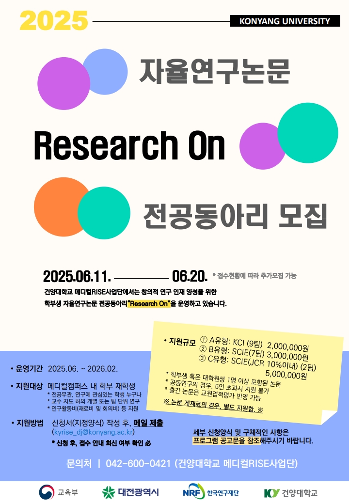 | 제목 | [메디컬RISE사업단] 2025학년도 Research On 연구논문 전공동아리 모집공고 | ||||