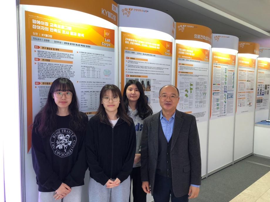2023.11.24(금) 건양대학교 LINC 3.0 사업단 주최로 열린 ‘2023 지역혁신 산학연협력 Fair’ 행사에 병원경영학과 2학년 재학생 3명이 성과전시(주제: 웰에이징 교육프로그램 참여자의 만족도 조사 결과 분석)에 참여하였습니다. 산학연협력 Fair는 대학 산학협력 성과 공유를 확산시키기 위해 개최되었으며, 캡스톤디자인경진대회, 창업교과아이디어경진대회, 성과전시(캡스톤디자인, Lab-Corps, Center Corps) 등등 다양한 행사가 진행되었습니다.