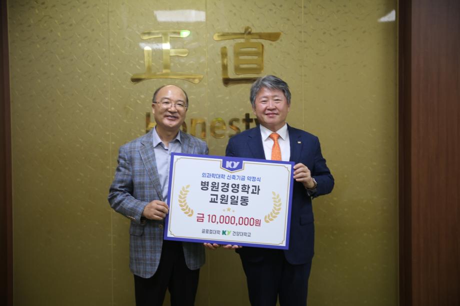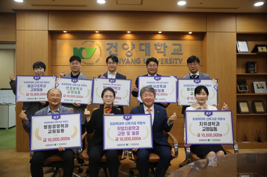 | 제목 | 건양대학교 의과학대학 신축기금 약정식에 병원경영학과 교수진, 1천만원 상당 기부금 전달 | ||||