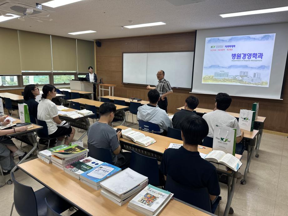 학과체험 프로그램에서는 학과 소개와 함께 KCD 1권, 3권을 이용해 질병을 분류하는 방법을 교수님께서 직접 가르쳐 주시며 학과에서 어떤 것을 학습하게 되는지 체험하였고, 그 후에는 학과 정규 동아리와 행사를 소개하는 시간을 가졌습니다.